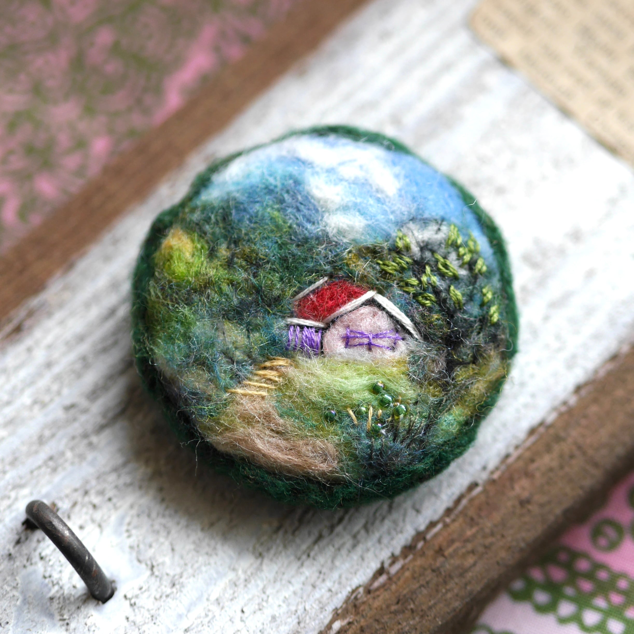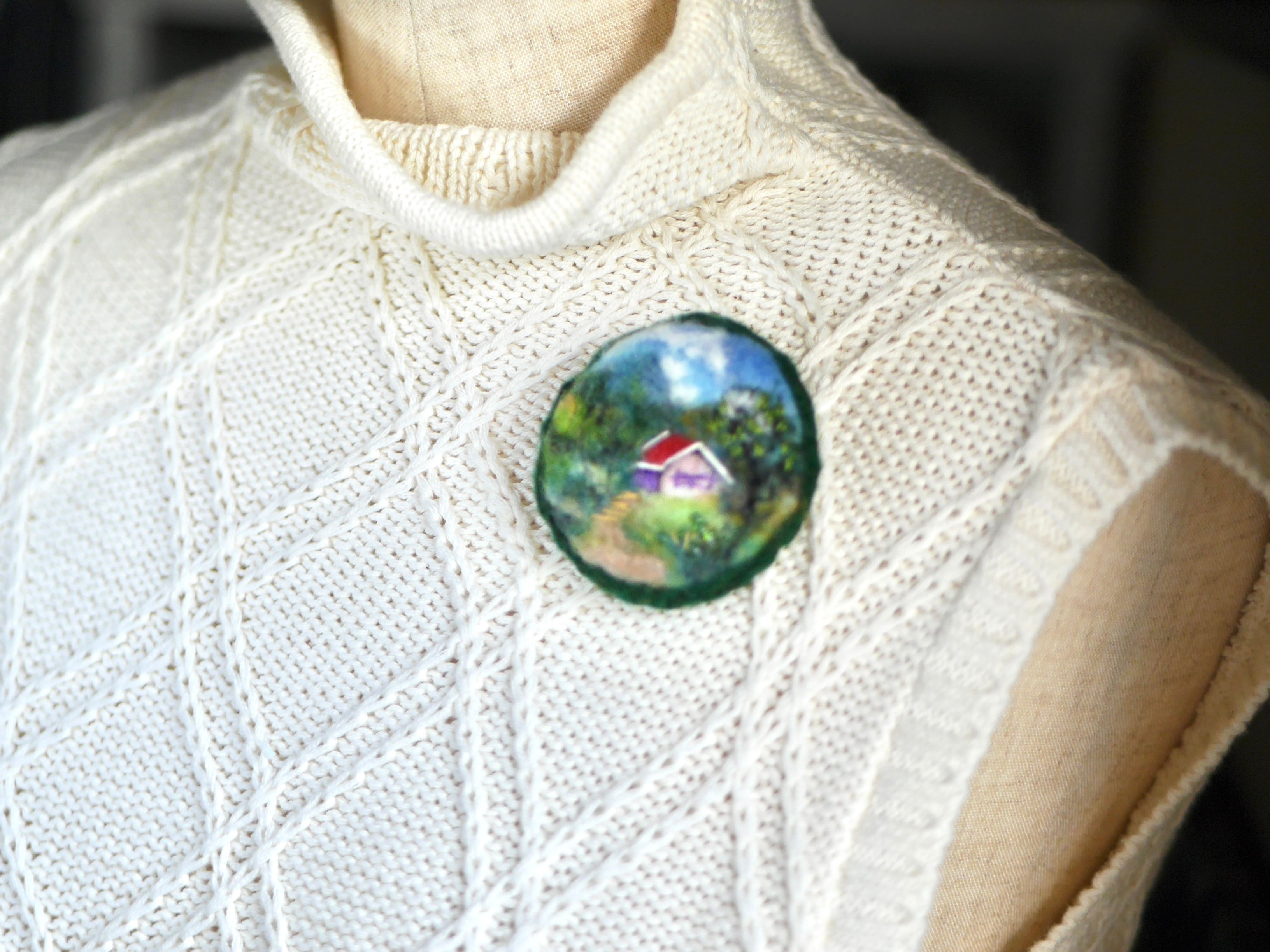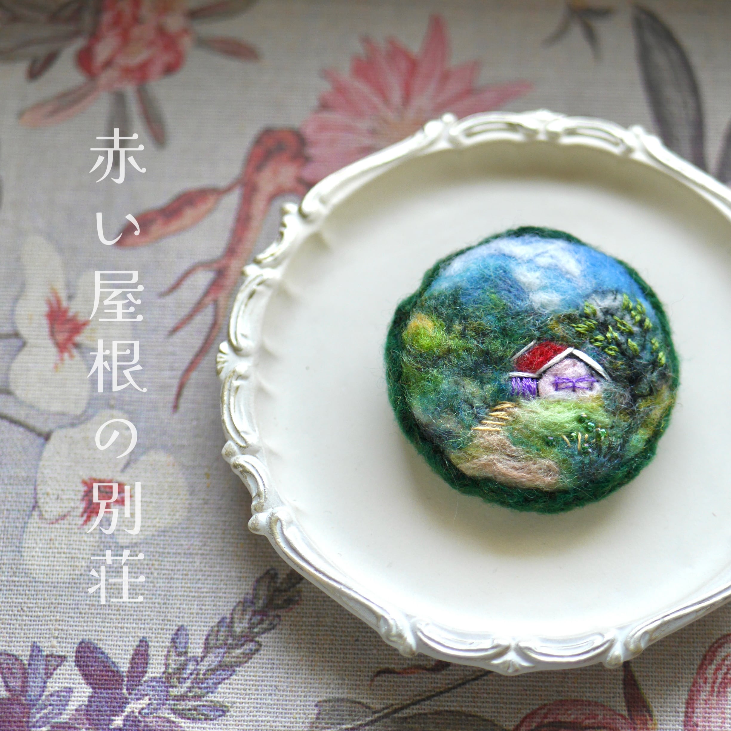 赤い屋根の別荘 羊毛フェルト 風景 ブローチ