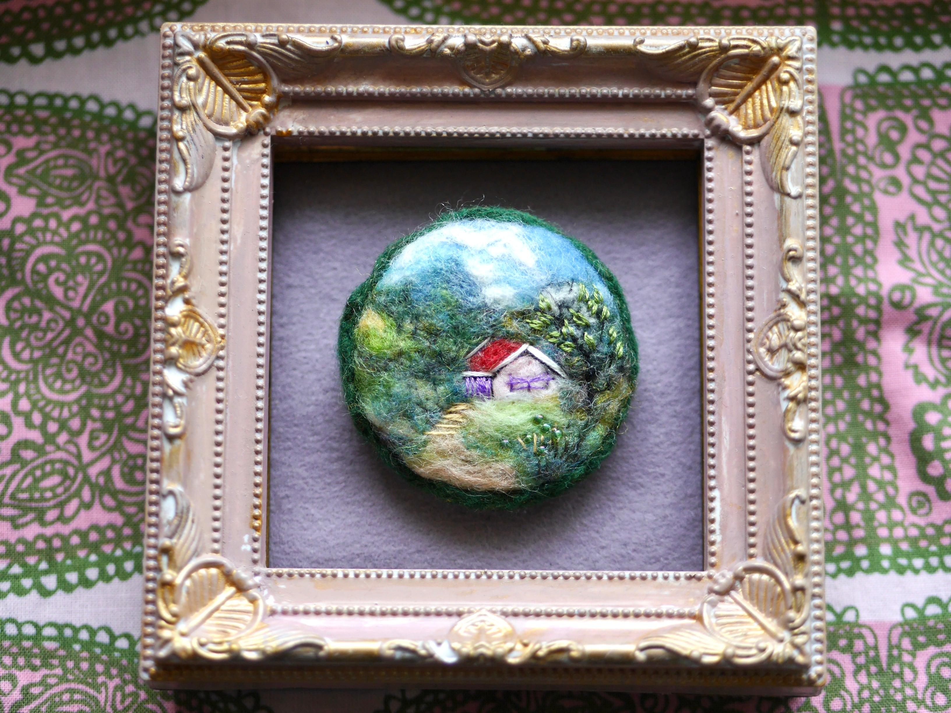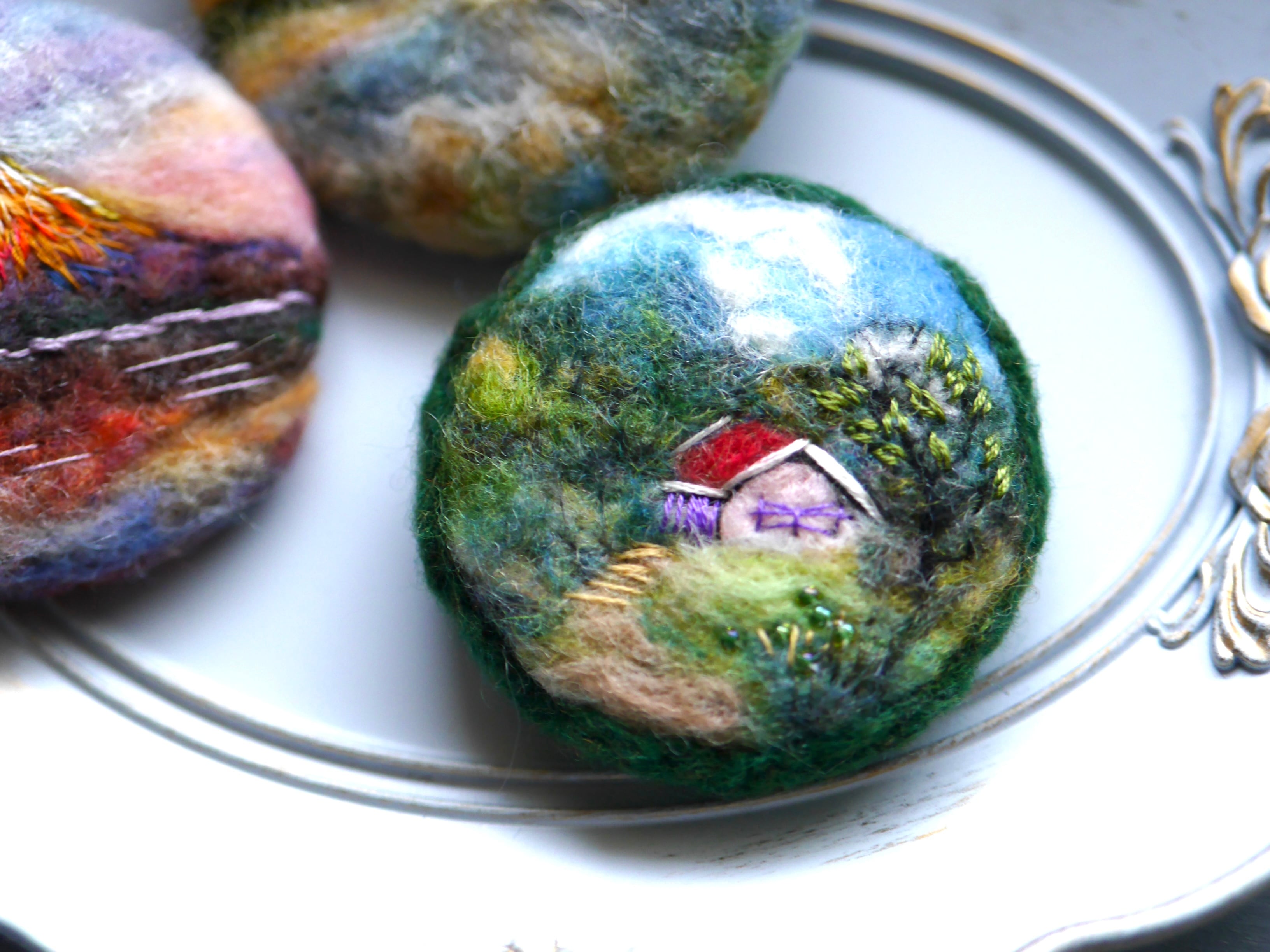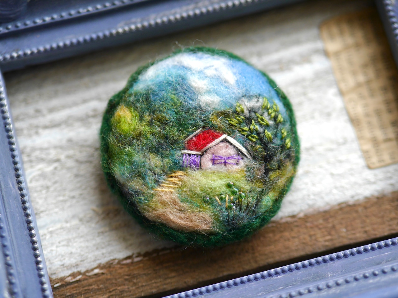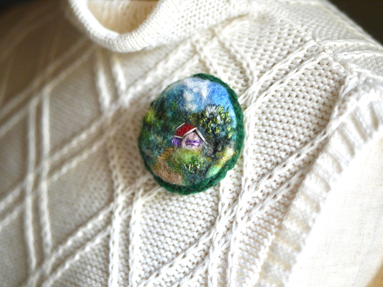 赤い屋根の別荘 羊毛フェルト 風景 ブローチ