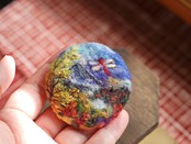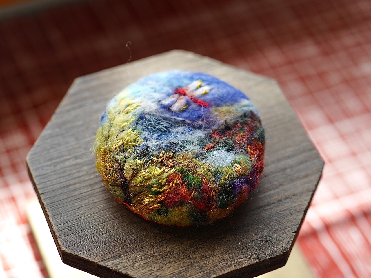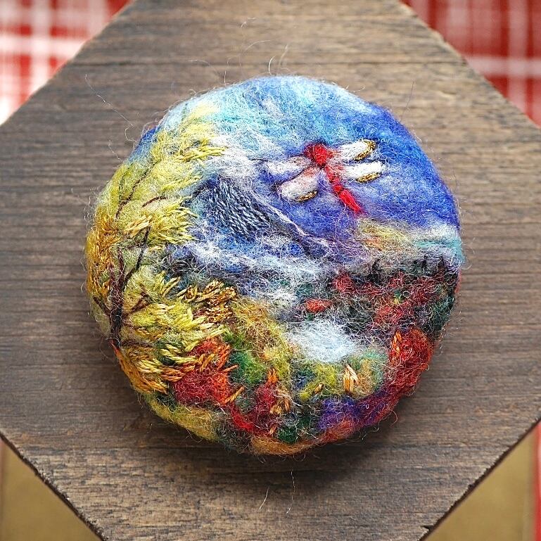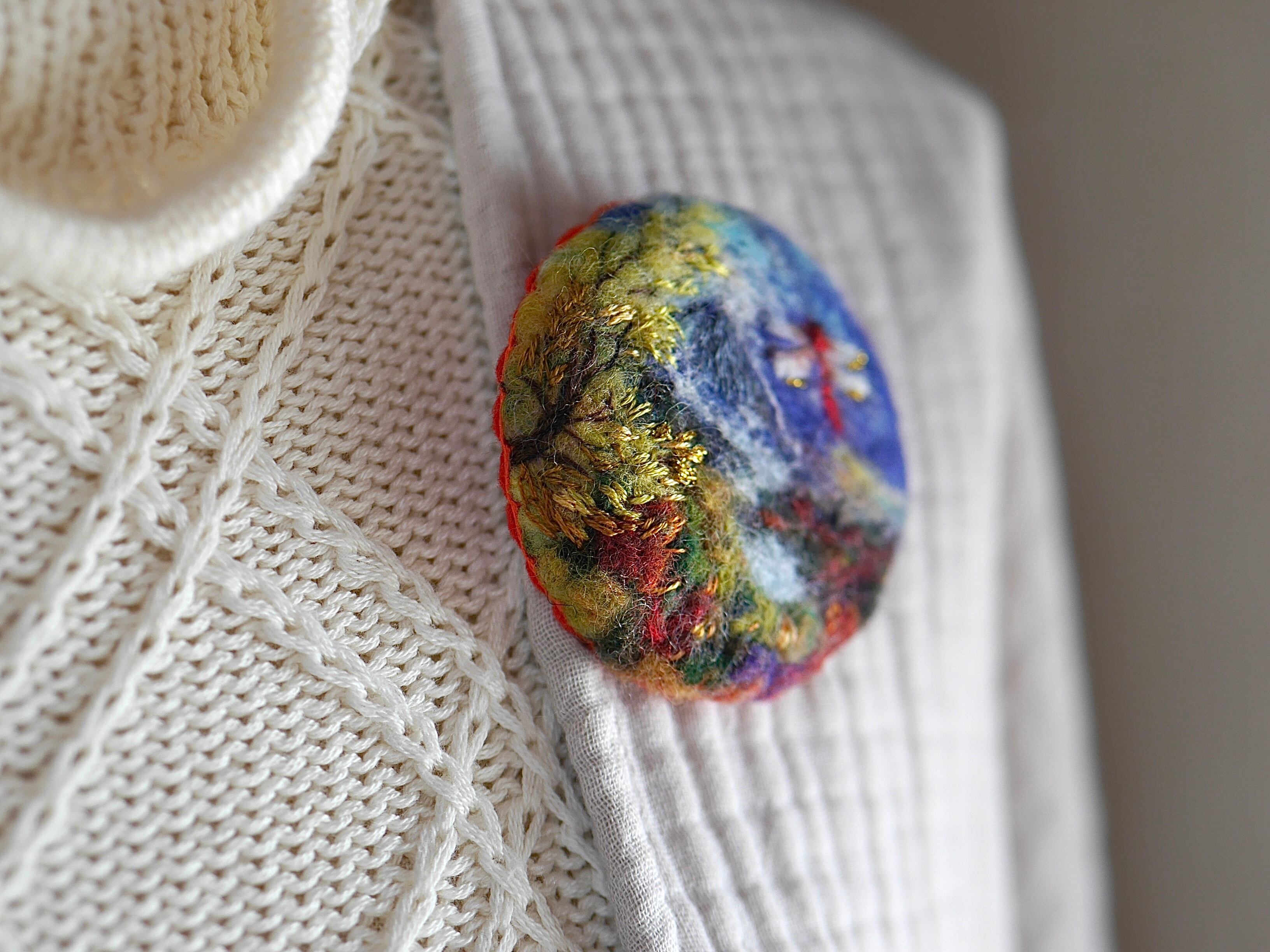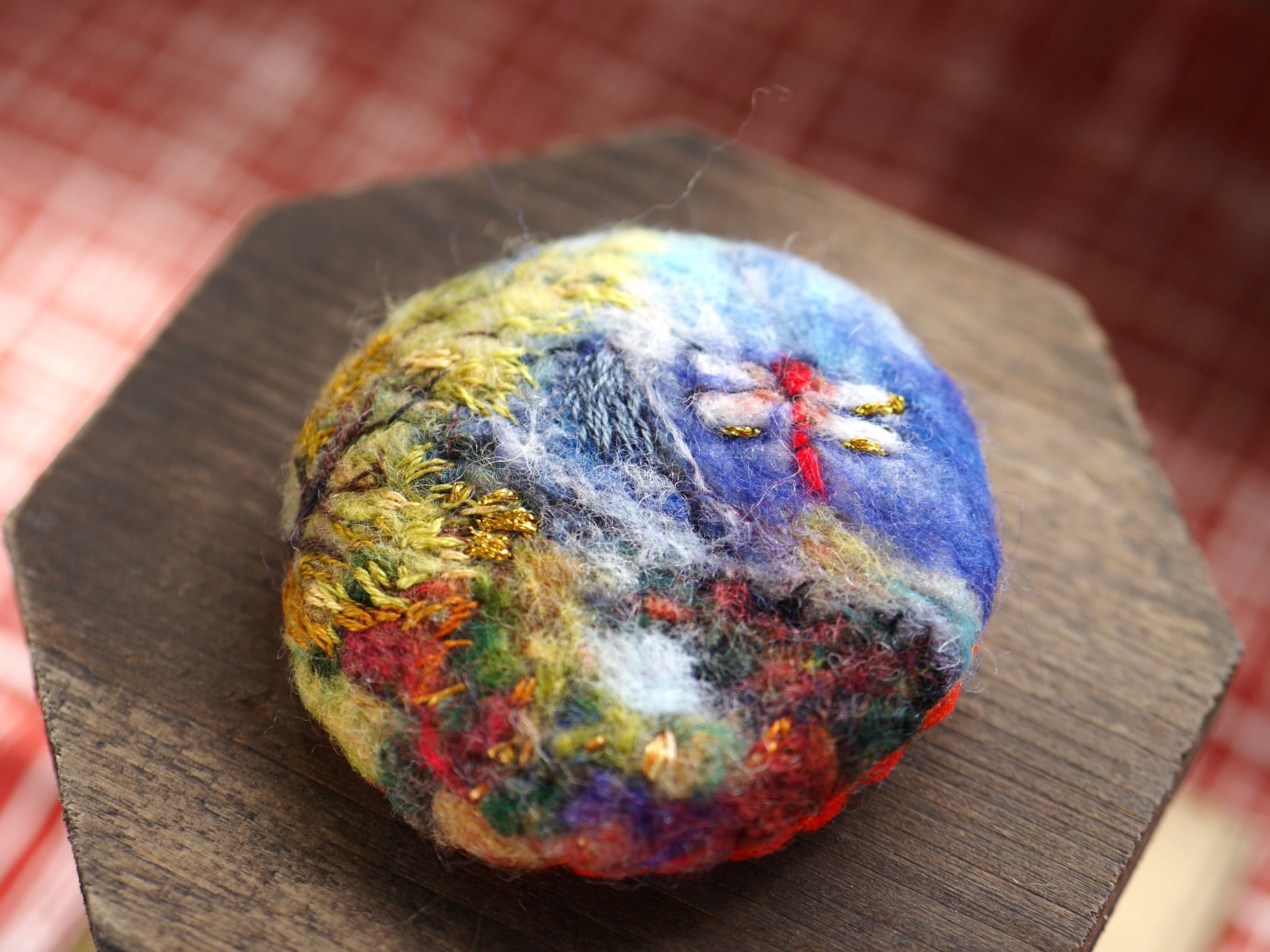 【Kさまご依頼作品】暮れゆく里の、赤とんぼ 羊毛フェルト 風景 ブローチ