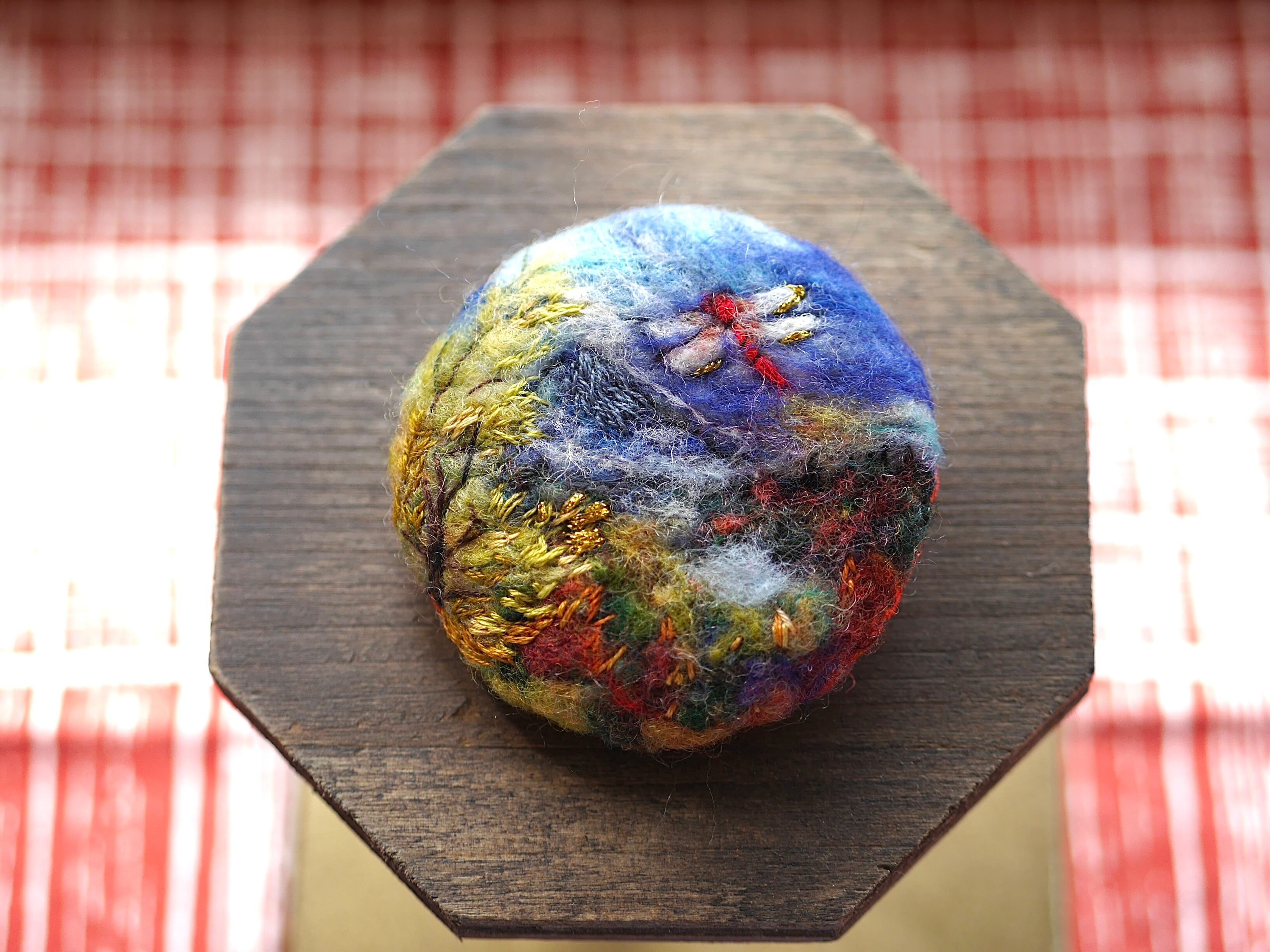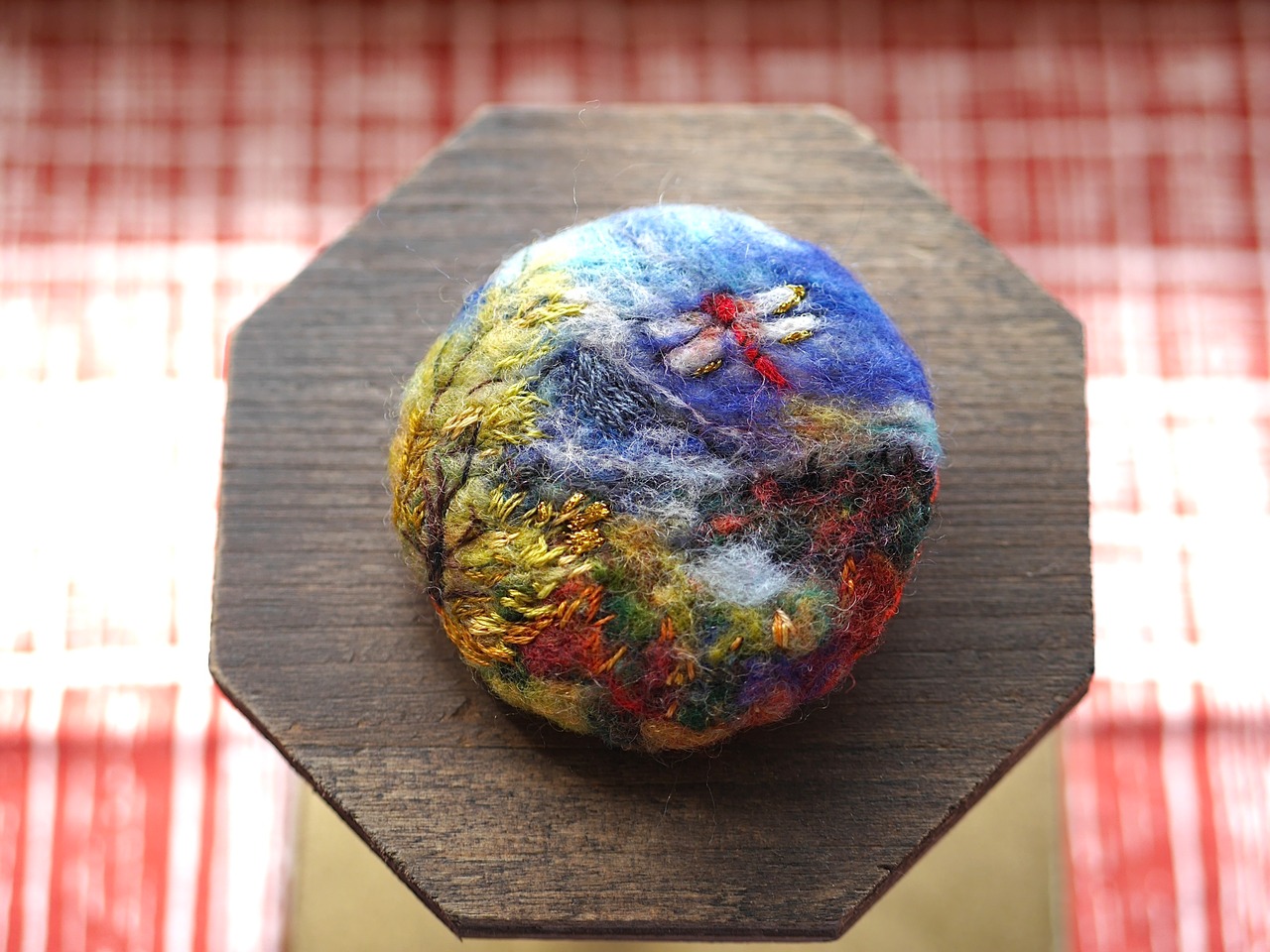 幾重にも色を重ねた末に生まれる奥行きと独特の深み。針先で繊細に描きながら、点を線に変えていく過程は非常に時間がかかりますが、この細やかな表現が、どなたかの優しい記憶を呼び起こす一助となれば幸いです。