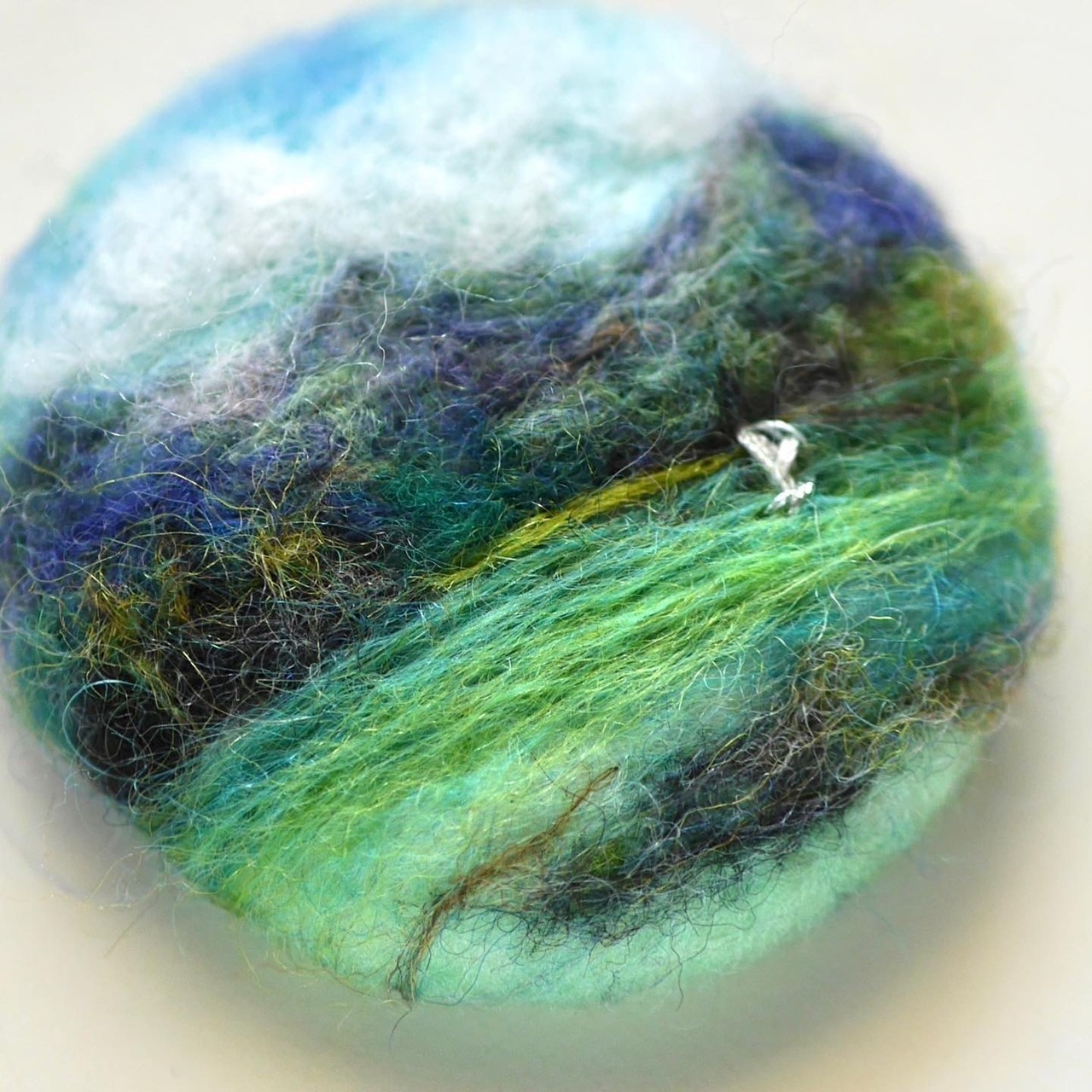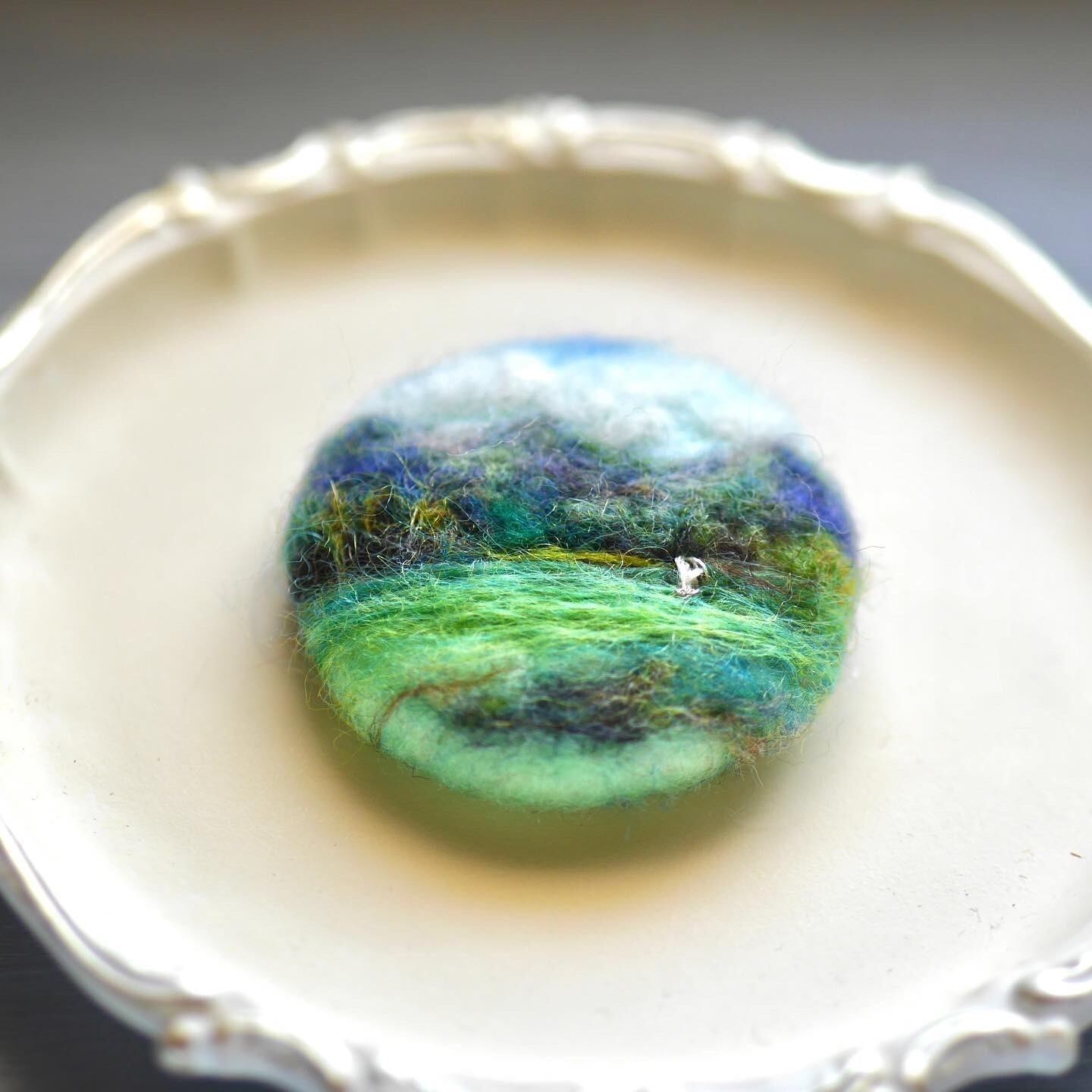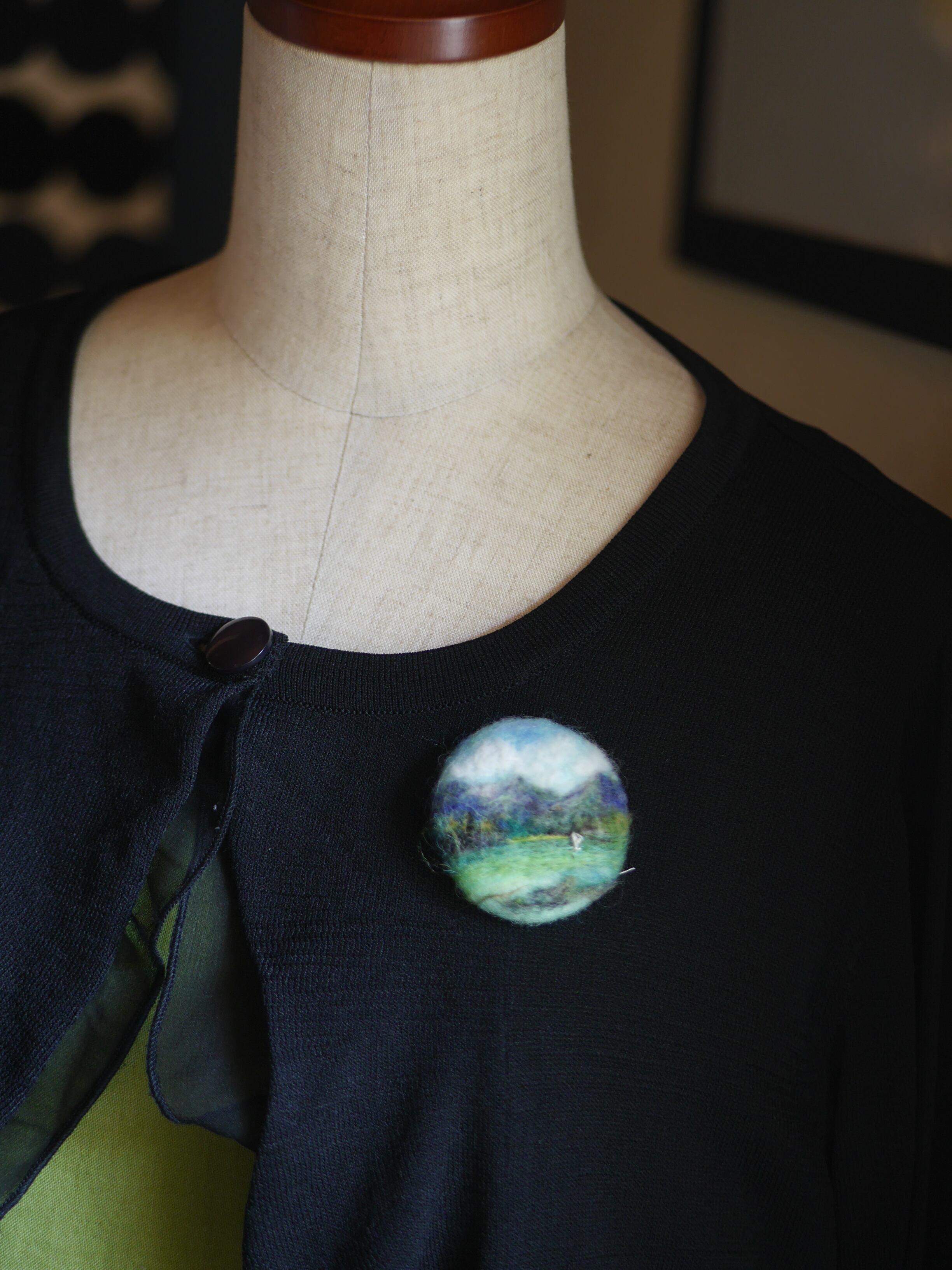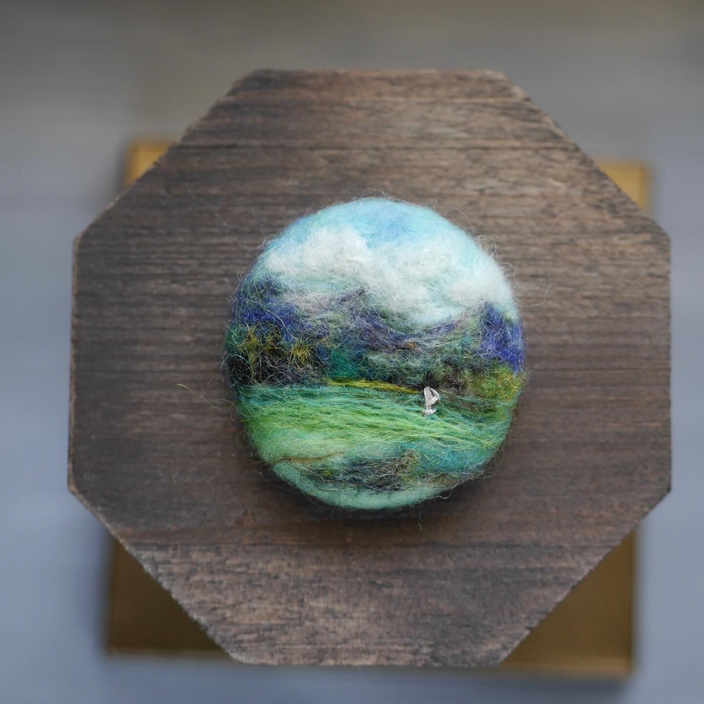 フォレストグリーンの追い風 羊毛フェルトブローチ