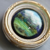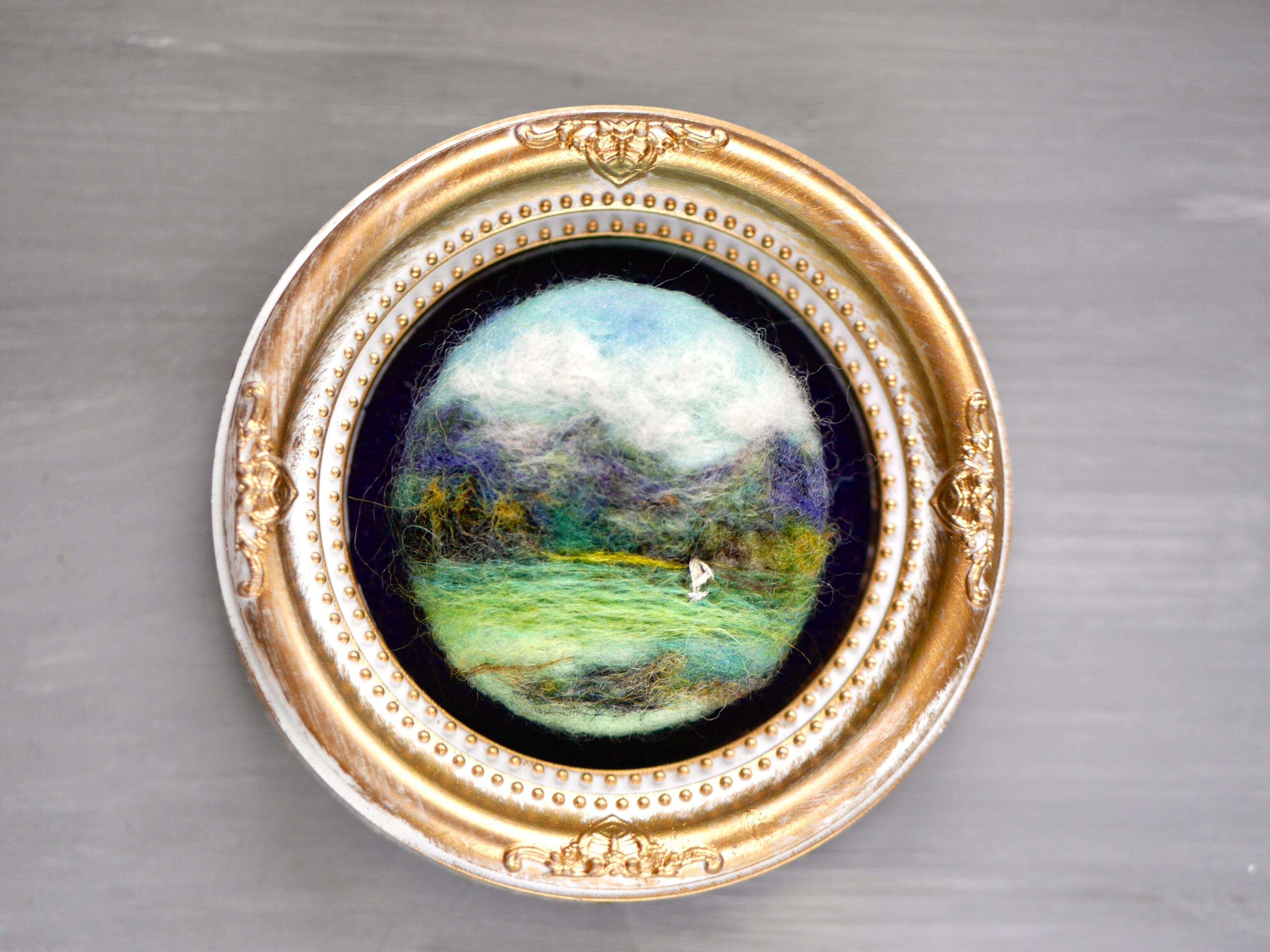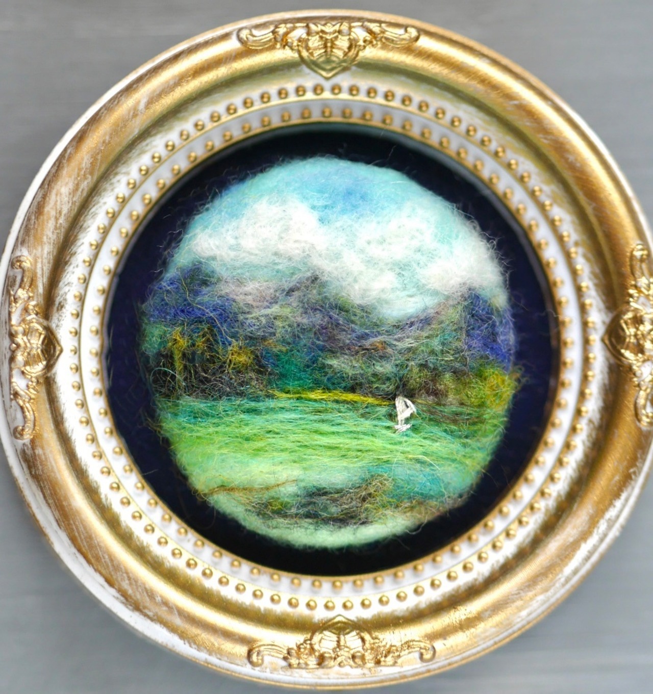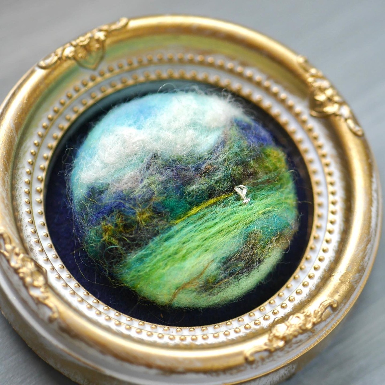 フォレストグリーンの追い風 羊毛フェルトブローチ